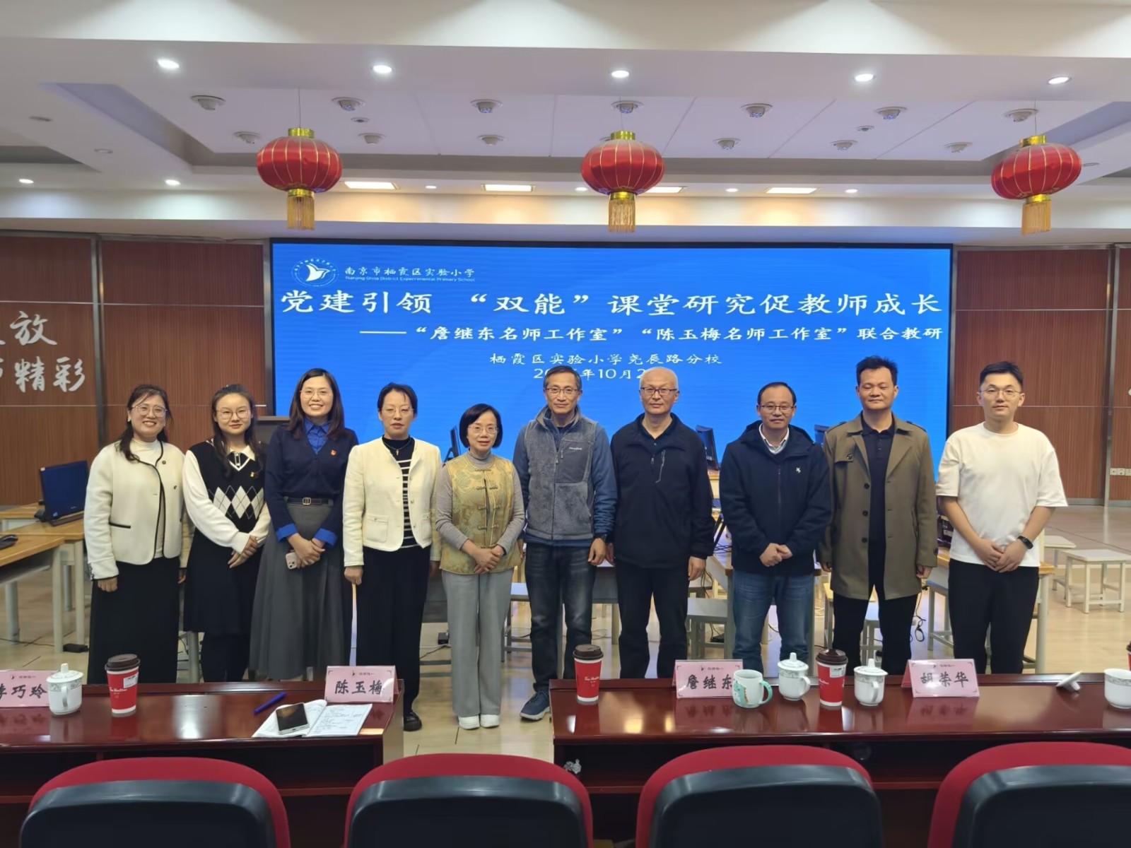 十月的校园桂香浮动,2025年10月28日,在这秋意渐浓的美好时节,一场聚焦党建引领“双能”课堂研究促教师成长的教研活动,在栖霞区实验小学尧辰路分校举办。栖霞区教师发展中心胡荣华副校长、李巧玲主任,江苏省网络名师工作室领衔人詹继东,栖霞区实验小学党委书记陈玉梅、校长魏辉,栖霞区在研党建课题的主持人及核心组成员,詹继东名师工作室成员、陈玉梅名师工作室成员,以及栖霞区实验小学教育集团全体数学教师,共同参与了本次教研活动。