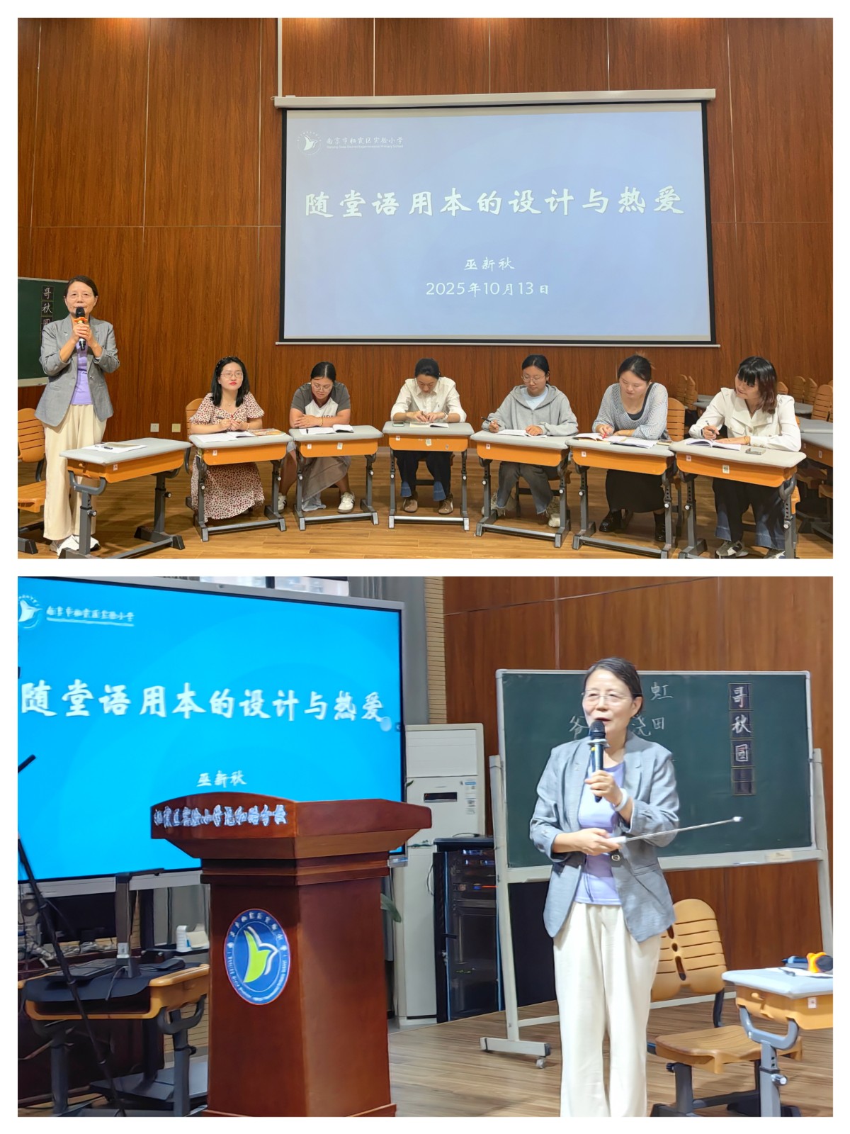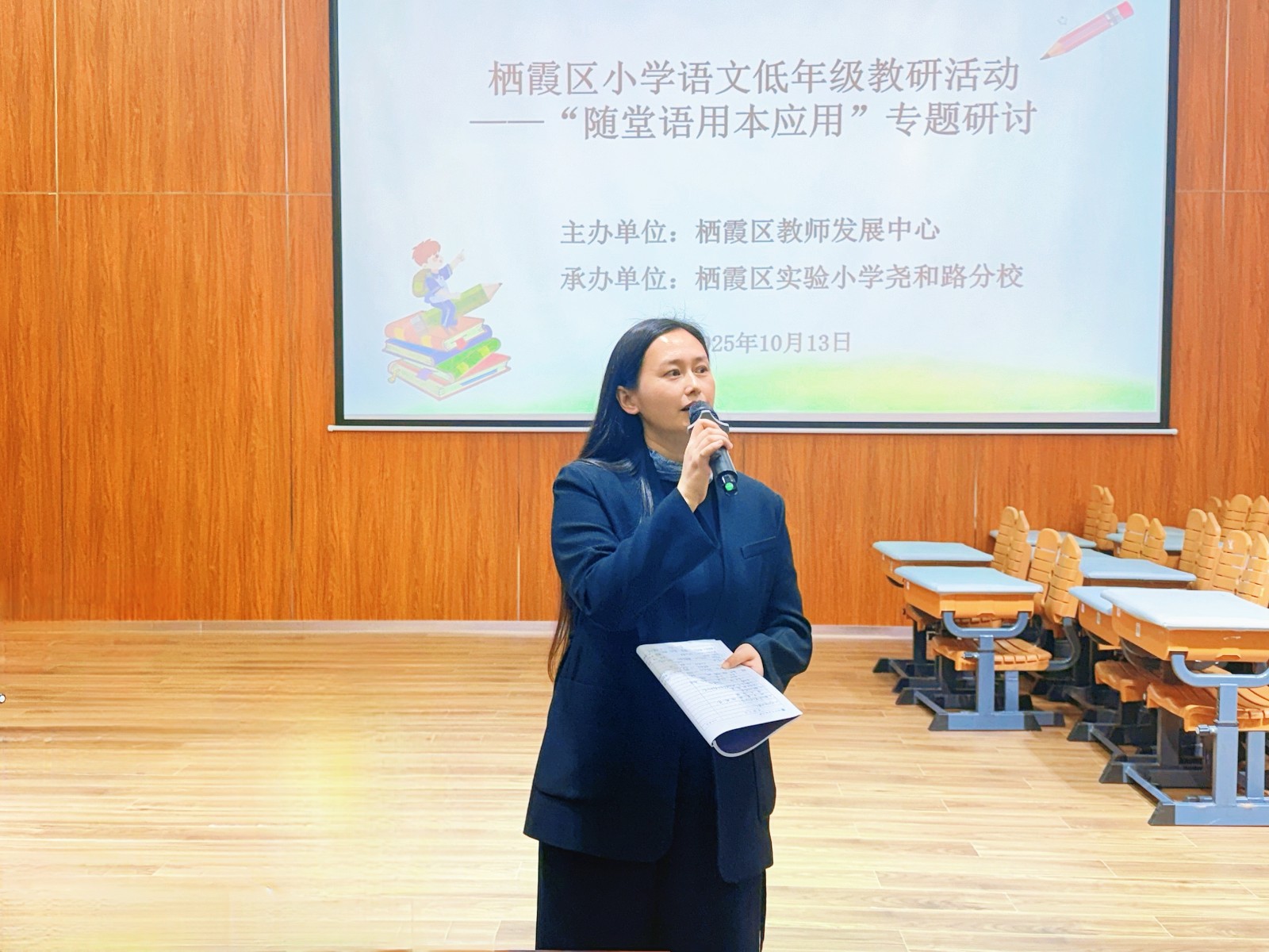 2025 年 10 月 13 日下午,巫新秋任敏名师工作室承办的栖霞区小学语文低年级“随堂语用本应用”专题研讨活动在栖霞区实验小学尧和路分校顺利开展。栖霞区教师发展中心小学科研处主任、小学语文研训员黄文峰老师,工作室主持人巫新秋副校长、栖霞区实验小学尧和路分校马文校长、工作室核心成员邹洁副校长、朱丽娥主任及栖霞区小学语文一二年级老师共同参加活动。