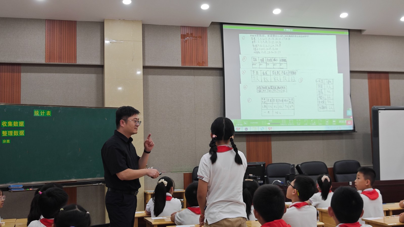 首先,由栖霞区实验小学尧化门街分校潘学超主任带来了一节精彩纷呈的《统计表和条形统计图》公开课,这种以生活情境为依托的导入方式,不仅激发了学生的探究欲望,也让数学学习与生活实际紧密相连。通过数据整理、探究统计表和条形统计图的结构、对比不同的信息统计方式,帮助学生构建起对统计知识的完整认知。