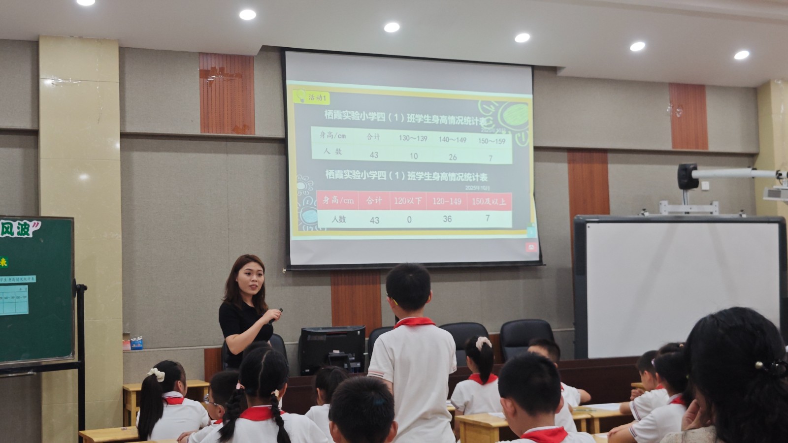 继潘学超主任的精彩课后,朱艮平老师带来第二课时《分段整理数据》。课堂以“服装店尺码风波”为情境,引导学生探究数据分段整理的方法,明确分段需“不重复、不遗漏”,并通过小组合作整理身高数据、对比不同分段统计表,理解“分段越小越准确”的特点。同时结合四年级国测介绍身高指数的分段知识,以及视力统计等生活实例,让学生体会分段整理在实际中的广泛应用,有效提升了学生的数据分析与应用能力。