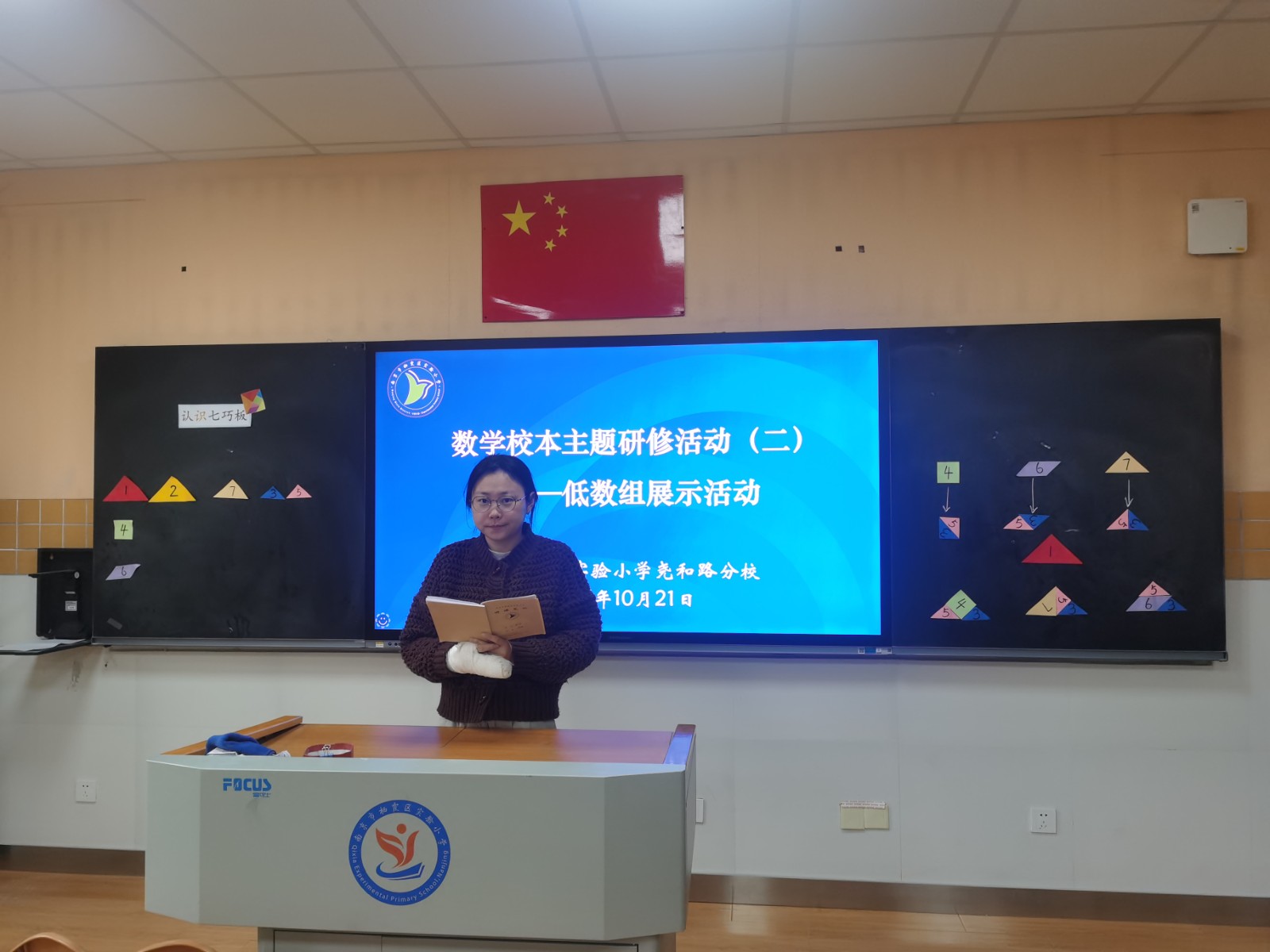 为探索人工智能技术与数学课堂的深度融合,推动校本化教学创新,栖霞区实验小学尧和路校区于10月21日下午开展了主题为“智研 智教 智学:AI赋能数学课堂的校本化创新路径研究”的教研活动。本次活动由胡莹老师执教《认识七巧板》一课,李茜茜主任开展相关微讲座,全体数学教师参与观摩与研讨。
