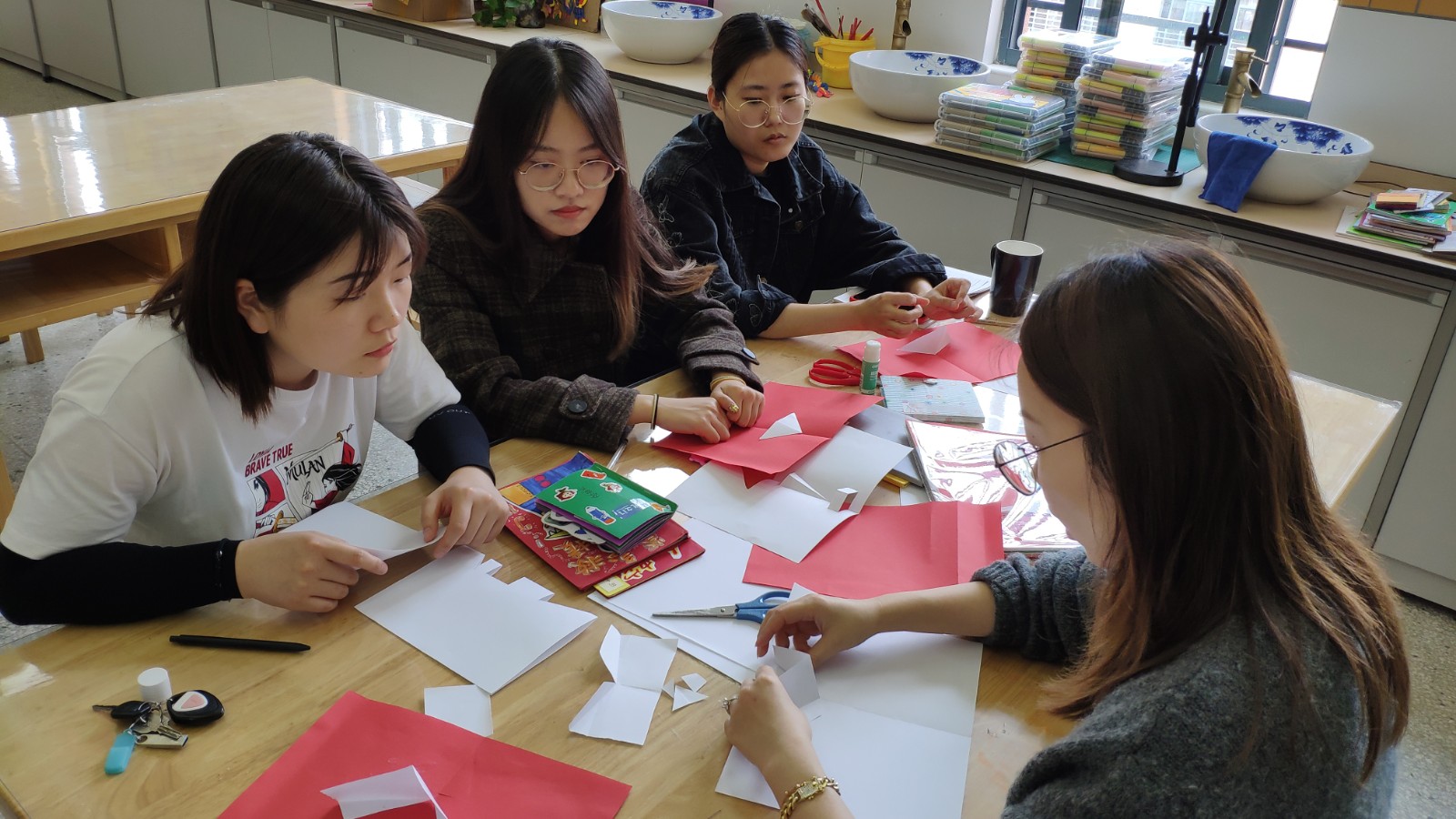 讲座后,参加研讨的教师在程思老师的带领下,参与制作立体绘本,探讨在制作中遇到的问题,及在教学中学生可能会出现的困难,程思老师都予以了一一回答。