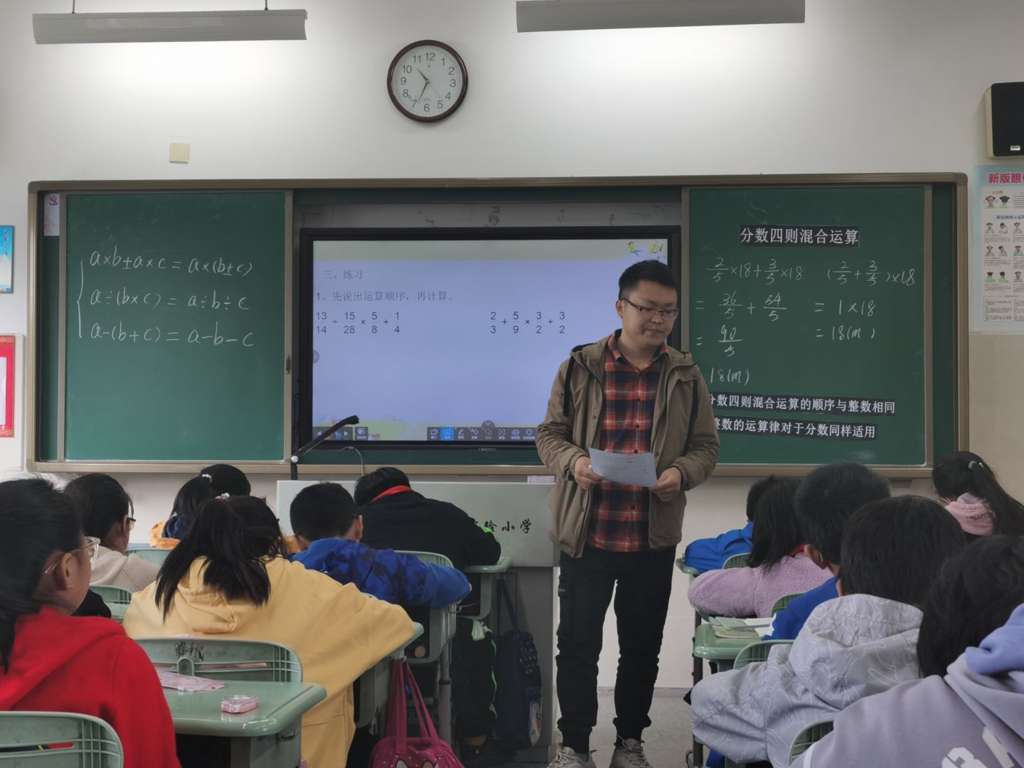 数学学科“至善杯”赛课第二场如期举行,本次参与赛课的是六年级组的教师们,赛课课题是六年级上册第五单元第一课时《分数的四则混合运算》。