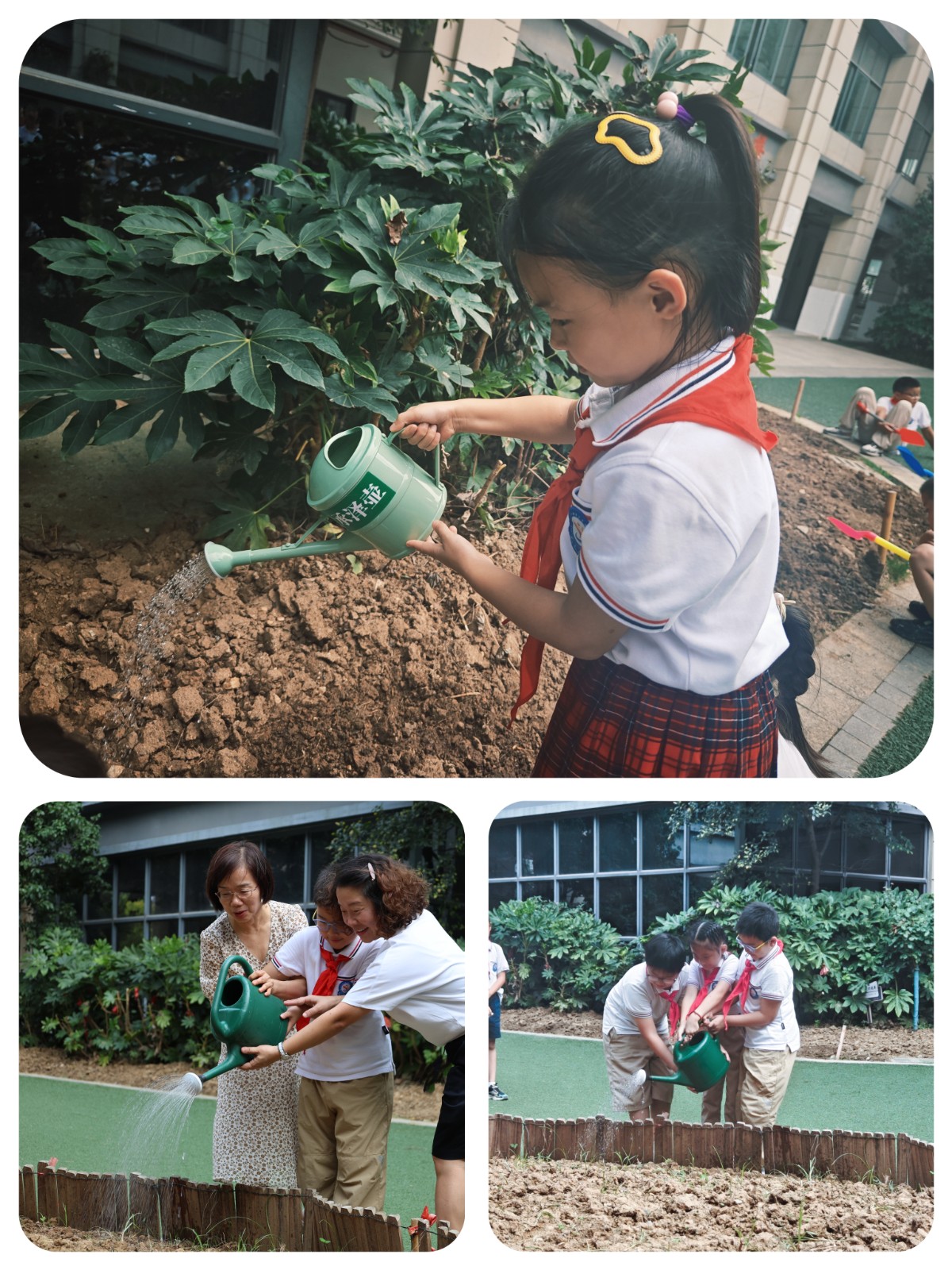 仪式拉开帷幕,陈玉梅书记为各班责任田授予种子,并寄语同学们“以毅力的泥土守护它,以责任的清泉滋养它”,学生们郑重承诺“做校园的小主人,弘毅承责”。在陈书记和老师们的带领下,各班“善雅陶娃”依次上前,亲手播下一粒粒希望的种子。弯腰、落种、覆土,每一个动作都认真而庄重。随后,同学们手提“承泽壶”,为刚埋下的种子浇灌“生命之水”。水珠洒落的瞬间,仿佛也浇灌了每一位孩子心中责任的幼苗。活动最后,全体师生肃立齐诵《播种词》:“厚土载魂,薪火相传!深根弘毅,发芽承责!”铿锵有力的声音在校园中回荡,传递出大家对未来的美好期盼。