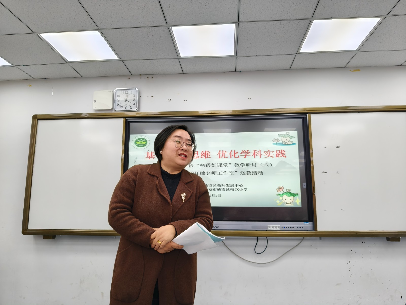 2025年12月1日下午,栖霞区“基于整体思维,优化学科实践”小学语文中段“栖霞好课堂”教学研讨(六)暨“巫新秋任敏名师工作室”送教活动在靖安小学举行,东片教育共同体全体三四年级语文老师参加了本次活动。