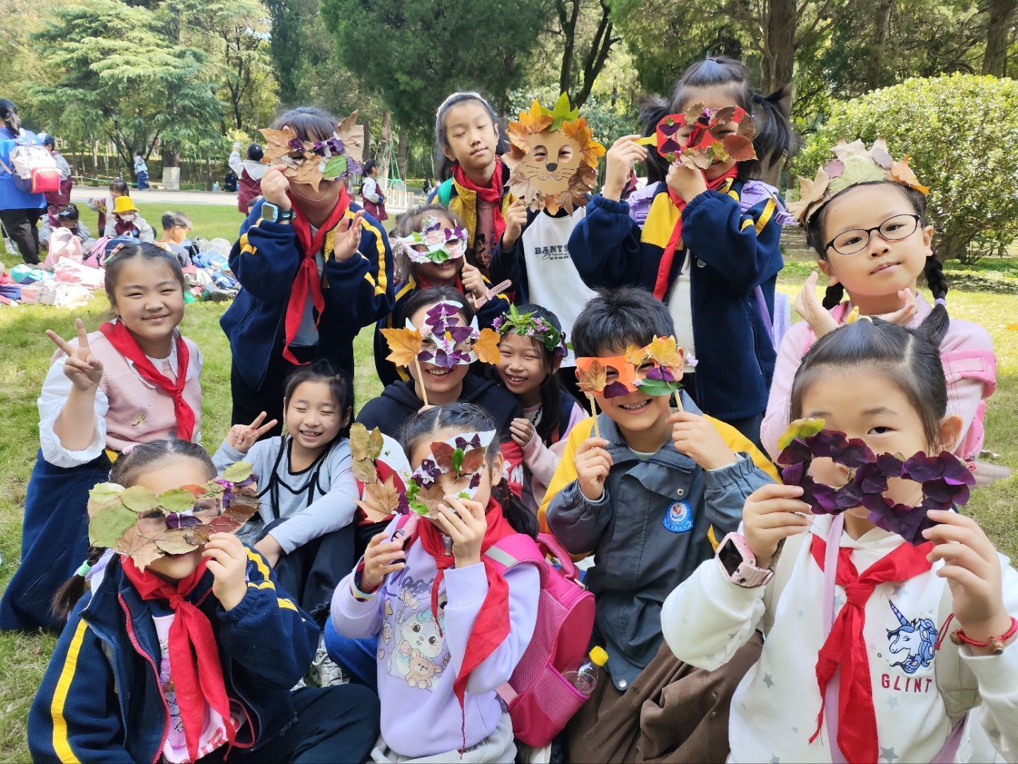 一二年级走进南京中山植物园,师生共采地面落叶,在观察树叶形状、颜色的互动中,合作创作落叶皇冠、自然手环等手工作品,感受自然创意乐趣;三四年级前往欢乐谷,在欢乐氛围中放松身心,体验实践中的快乐;五六年级探访汤山阳山碑材与地质博物馆,观看景区表演、探秘地质奥秘,触摸历史与科学的温度。