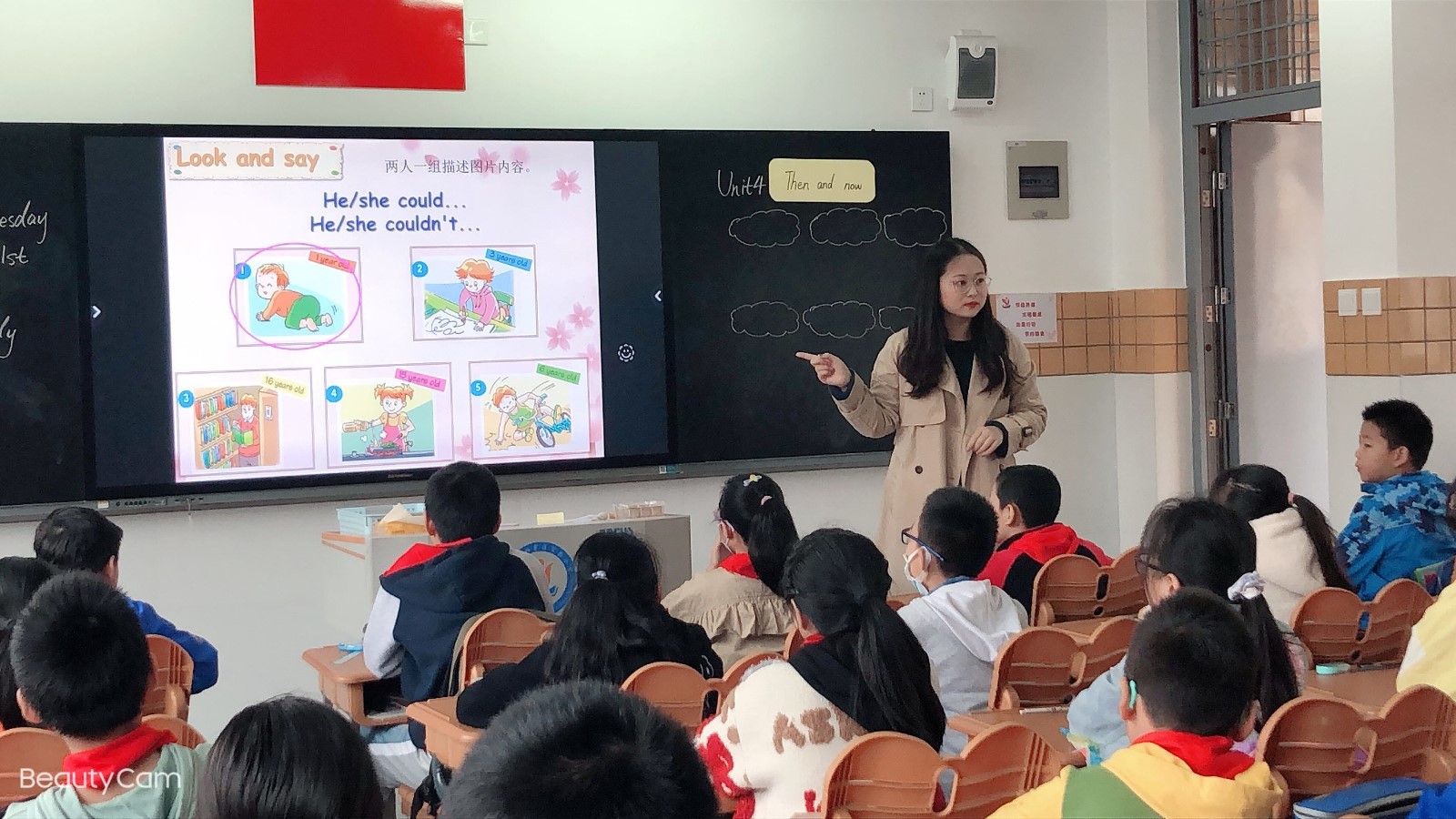 杨丽萍老师在六(3)班上Unit 4 Then and now的复习与写作课,全组老师认真听课,课后进行了深入的交流和研讨。杨丽萍老师的课节奏明快,组织有序。教学内容丰富,形式多样,教学过程循序渐进,具有一定的梯度。首先通过free talk、magic eyes、let’s talk等环节,有针对性地操练了本单元的重难点单词、短语和句型。教师将课本几个板块很好地整合在一起,不同环节之间过渡自然流畅。学生从听、说、读到写,语言能力不断提升。学生的反馈积极,课堂主动性高。